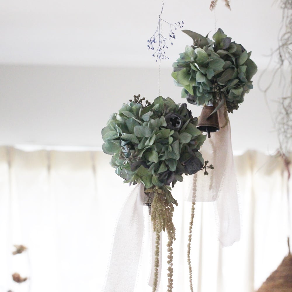 繊細なドライフラワーで作りました♪ ナチュラルなドライフラワーは、アンティークなインテリアとしてご使用いただけます。 ドライフラワーで作るアレンジは、1つ1つ違った雰囲気でお楽しみいただけます♪ 人気のスモークツリーボールです。 スモークツリーと実ものやドライフラワーなどで飾り付けました。 スモークツリーの旬の時期はフレッシュ感のある綺麗な色味となっておりますが、ご購入の時期によっては少しくすむ場合がございます。 あまりにも状態が悪い場合はキャンセルさせていただくこともございます。 ※ドライフラワーは非常に繊細なお花です。 梱包には気を配っておりますが、配送時に多少の花落ち、くずれがある場合がございます。 ※仕入れ状況により、写真と同じ種類の花材の入荷が難しい場合、種類が変更となります。 ※リボンのお色変更も可能です。 ※お届けまで7~14日間ほどお待ちいただきます。 ◆サイズ:直径約13~15cm 長さ40~50cm(調整可能) ◆花材:スモークツリー・サンキライの実・スターチス・ルリダマアザミなど(ドライフラワー) ◆その他:ボール・リボン ※素材の性質上、同じ素材でも色やサイズが異なります。 ギフトラッピングご希望の際は、有料ラッピングを選択してご購入下さい。 アレンジのサイズに合わせてボックスに入れ、リボンをかけてお送り致します。 簡易ラッピングは無料です。