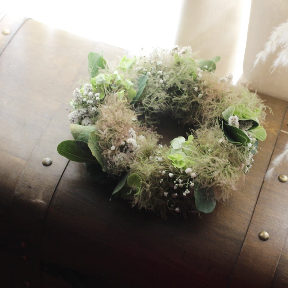 ドライフラワーで作るリースは、1つ1つ違った雰囲気でお楽しみいただけます。