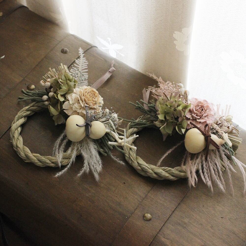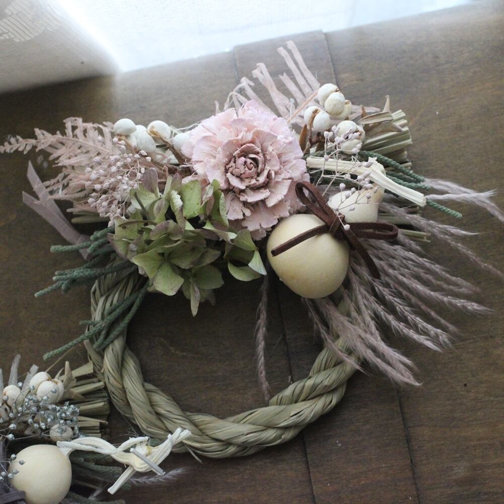 ひょうたんの入ったナチュラルでかわいいデザインのしめ縄飾り。