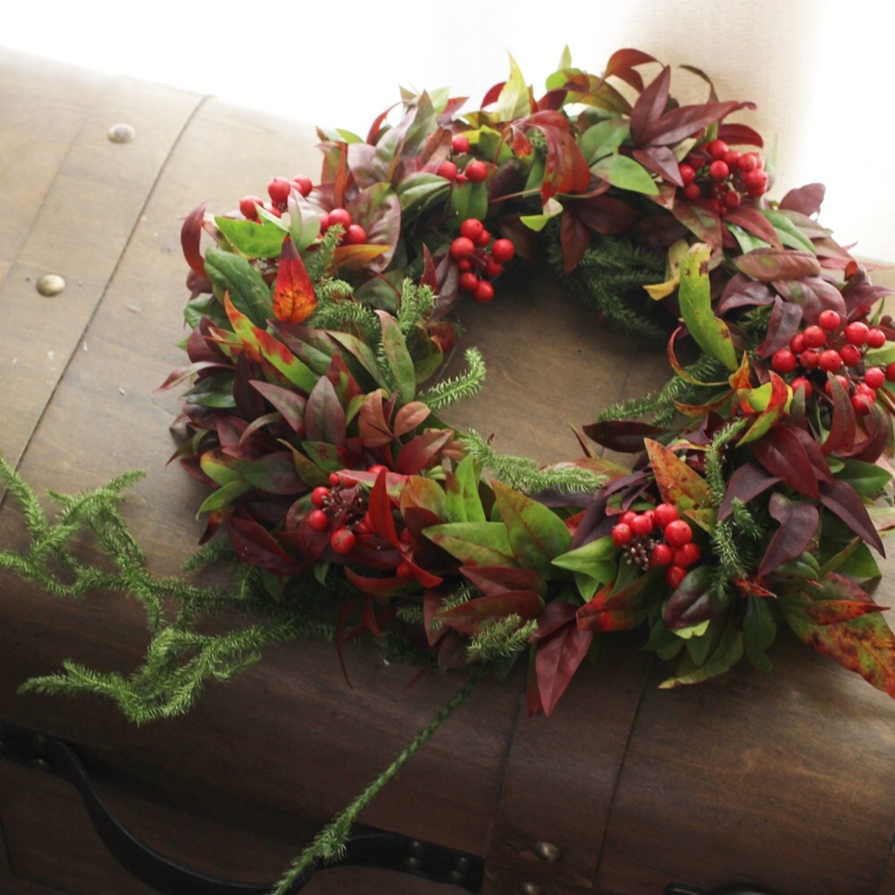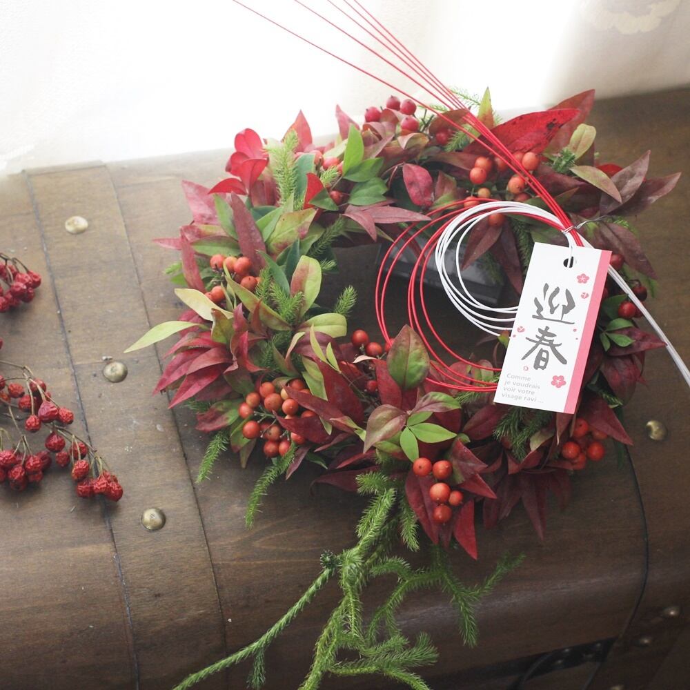 ※南天はぽろぽろ落ちやすいため、状態によりサンキライの実やペッパーベリー等に変更する場合がございます。