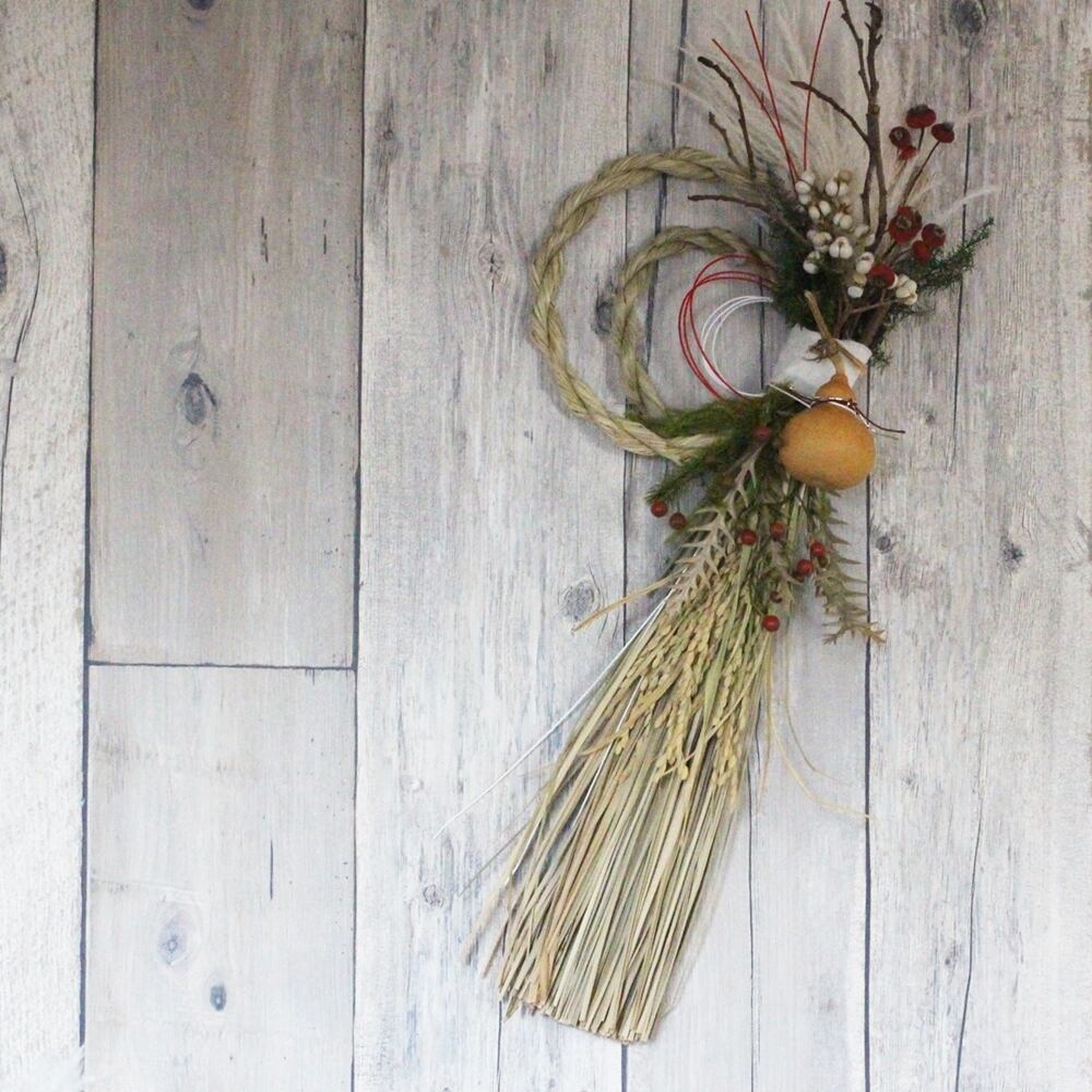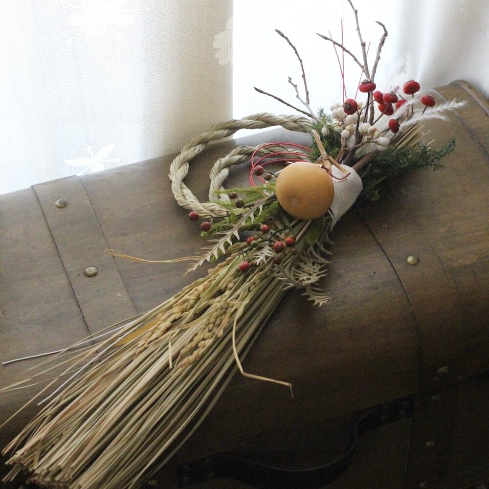 ドライフラワーで制作した、シンプルなしめ縄飾りです。