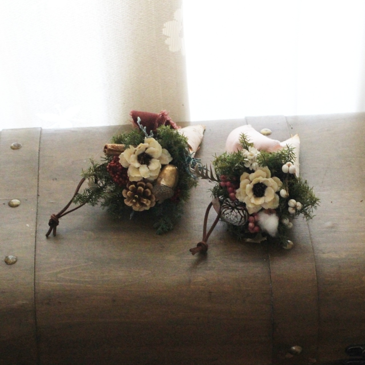 ◆花材:パインフラワー・ベリー・木の実数種(ドライフラワー) スギ・ブルーアイス(プリザーブドフラワー)