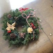 プリザーブドのスギを使った、クリスマスにぴったりのリース♪