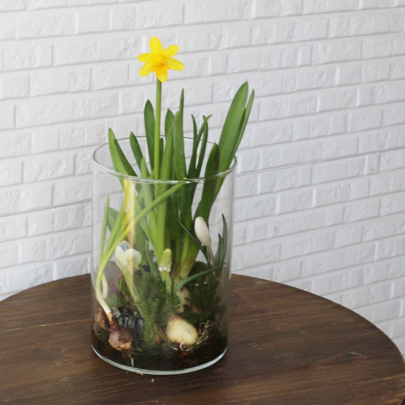 数種類の球根をアレンジし、グリーンで飾り付けております。