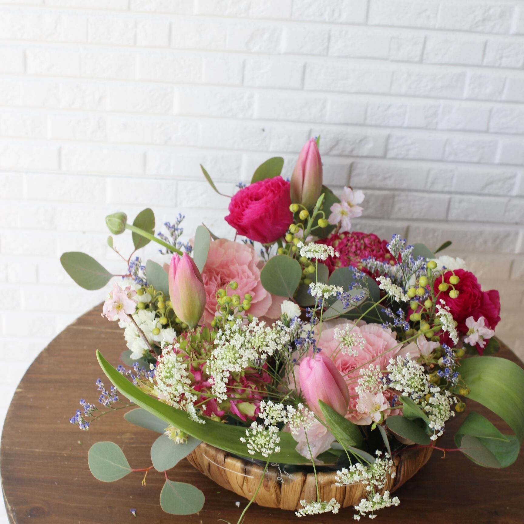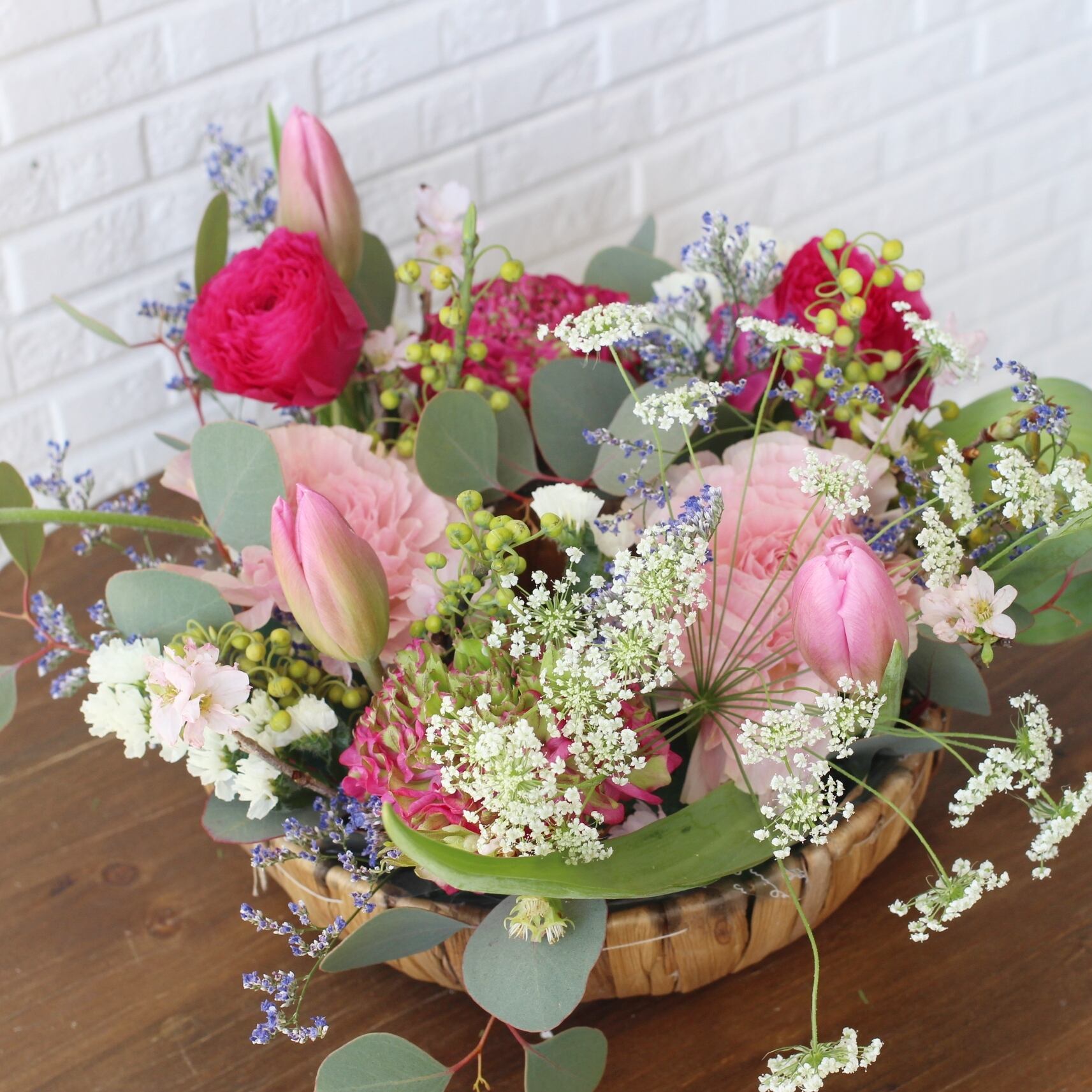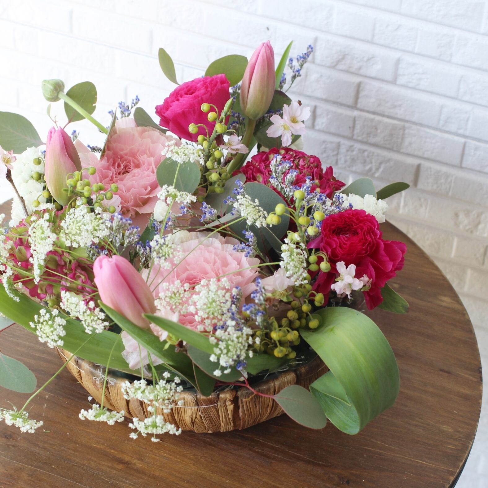 ◆花材:桜・チューリップ・ラナンキュラス・グリーン・季節のお花を使用