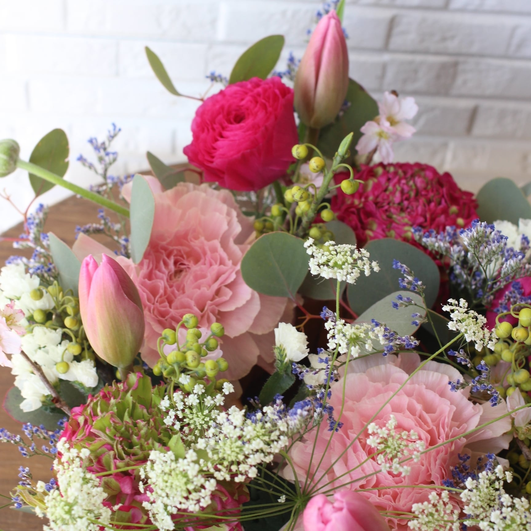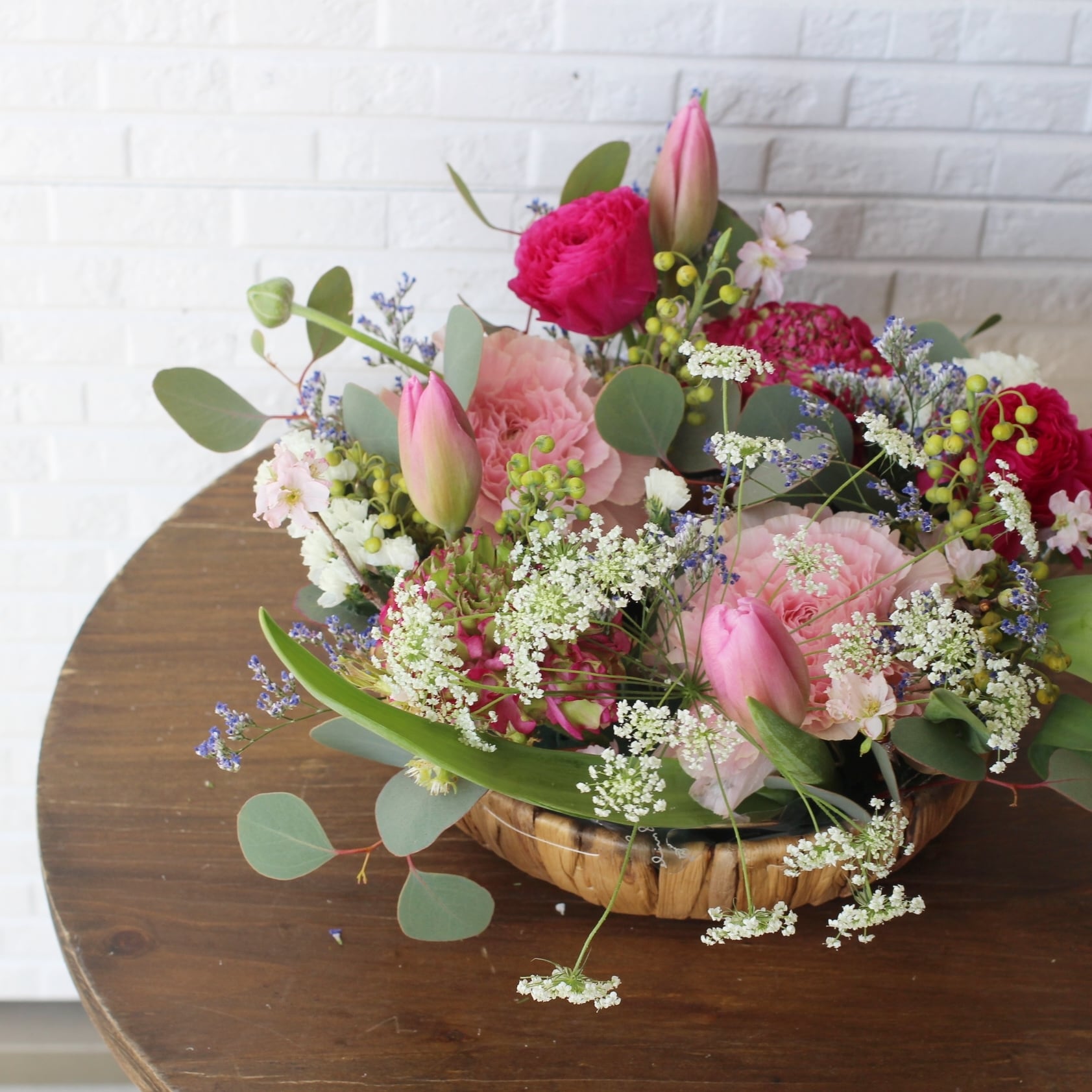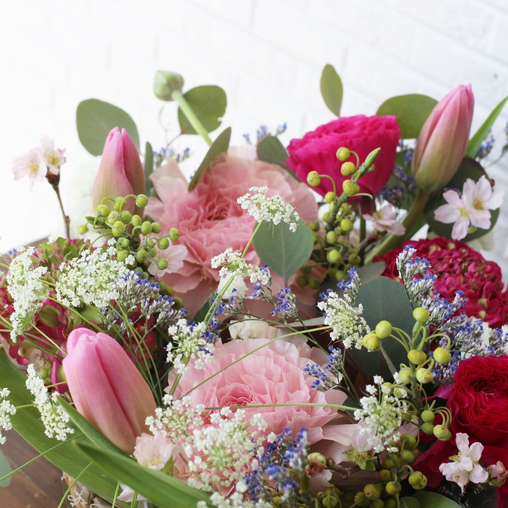 ◆花材:桜・チューリップ・ラナンキュラス・グリーン・季節のお花を使用