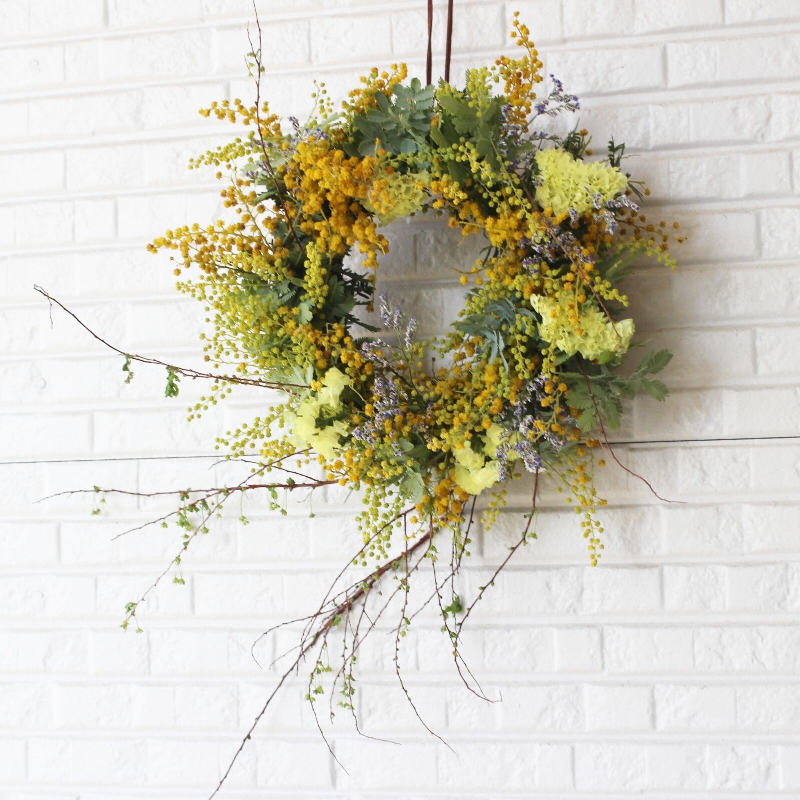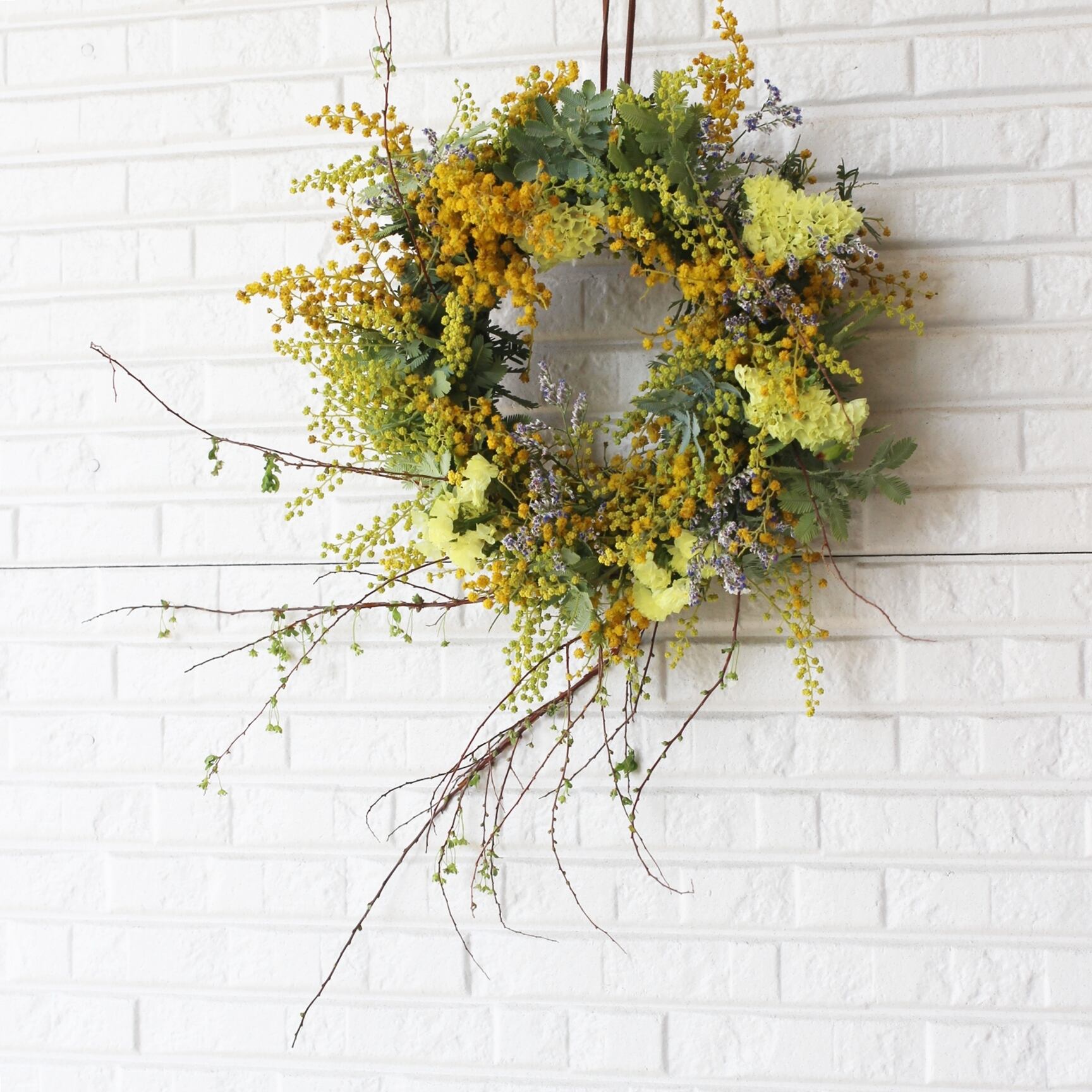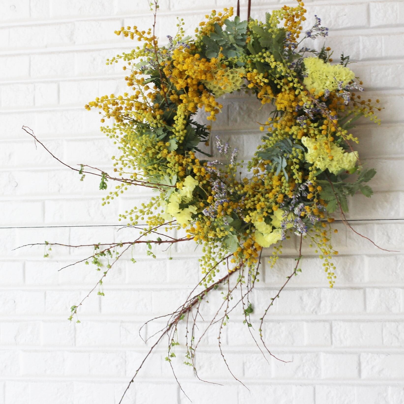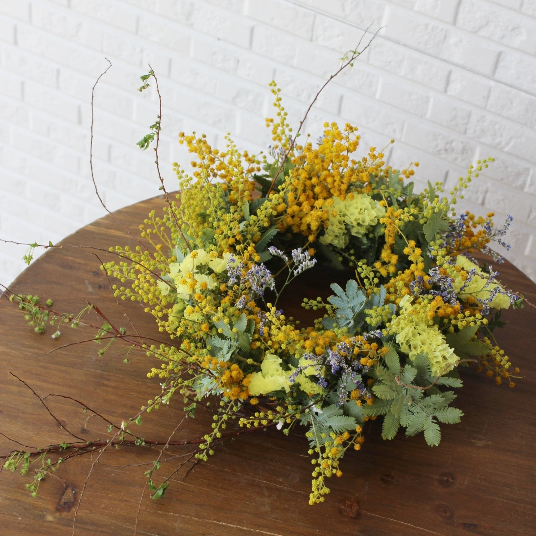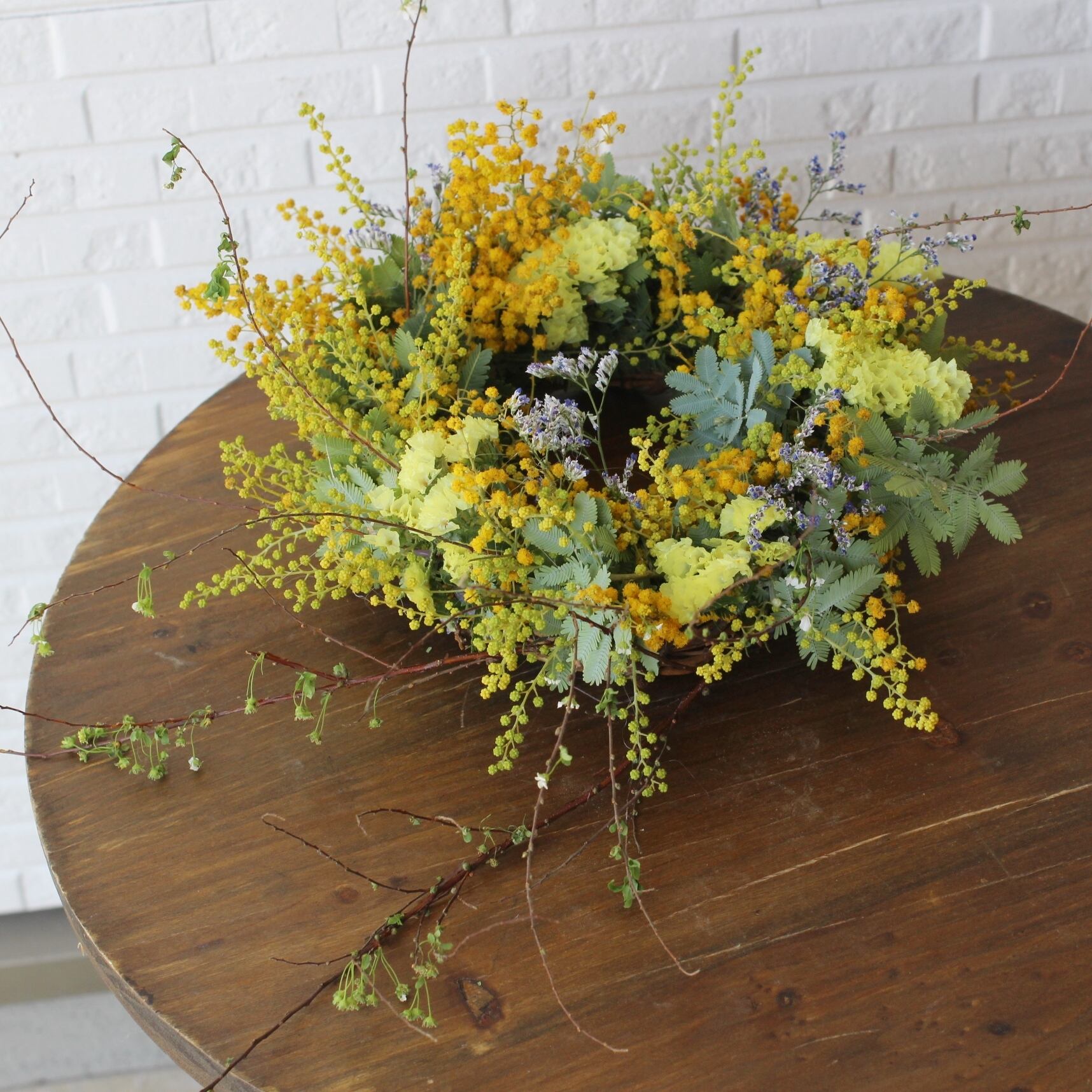 ◆花材:ミモザ・ユーカリ・アカシア・雪柳・スターチス(ドライフラワー)