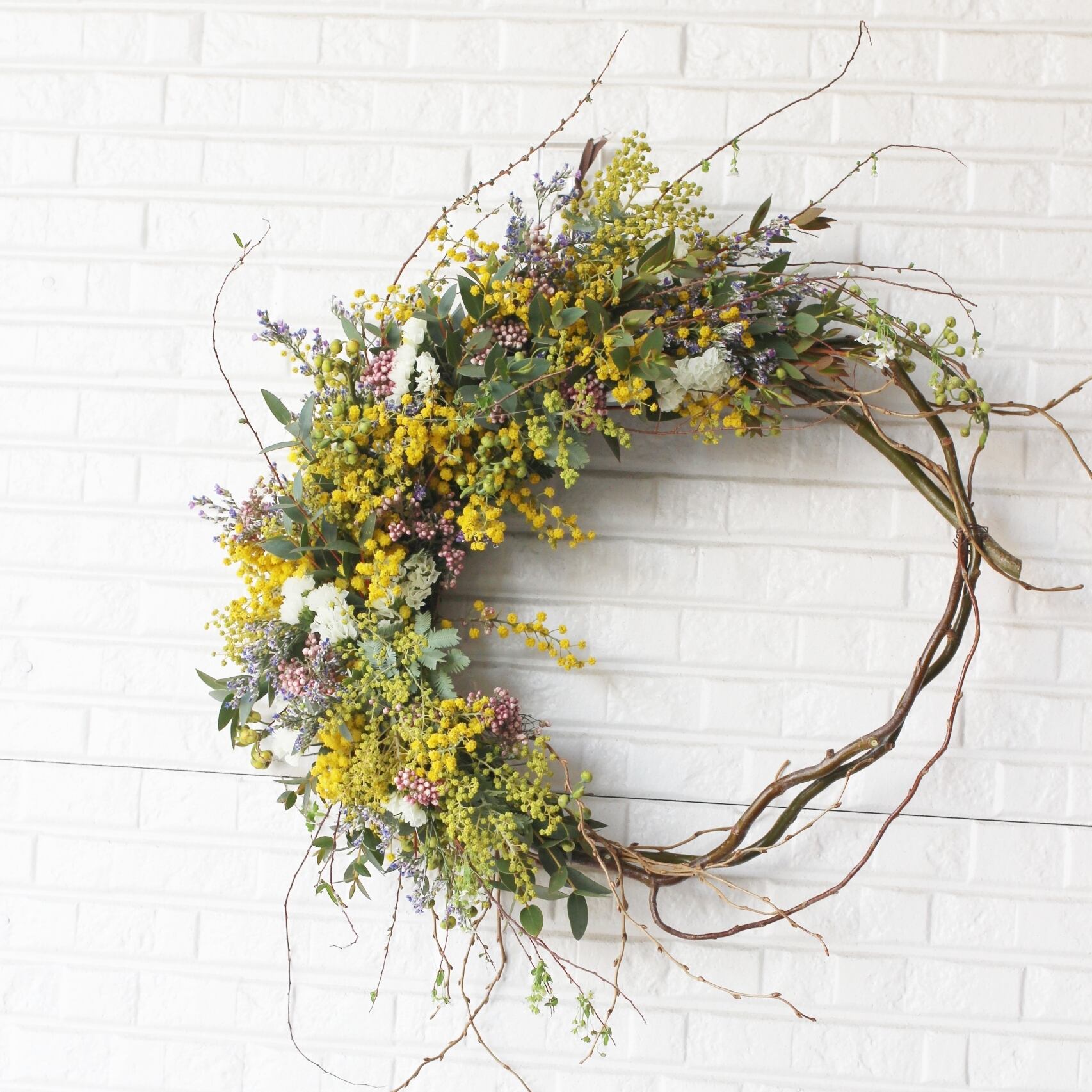 ミモザやユーカリ、雪柳など、ナチュラルな素材を使用しております。