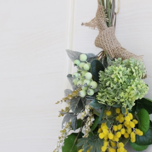 ◆花材:ユーカリ・ミモザ・ミント・ベリー・丸葉リーフなど(アーティフィシャルフラワー)