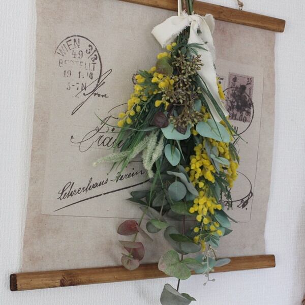※ミモザをメインに、ユーカリやベリーなどで制作を致します。