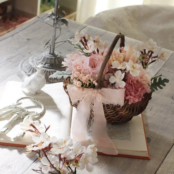 新商品で、桜のバスケットアレンジを作成致しました♪