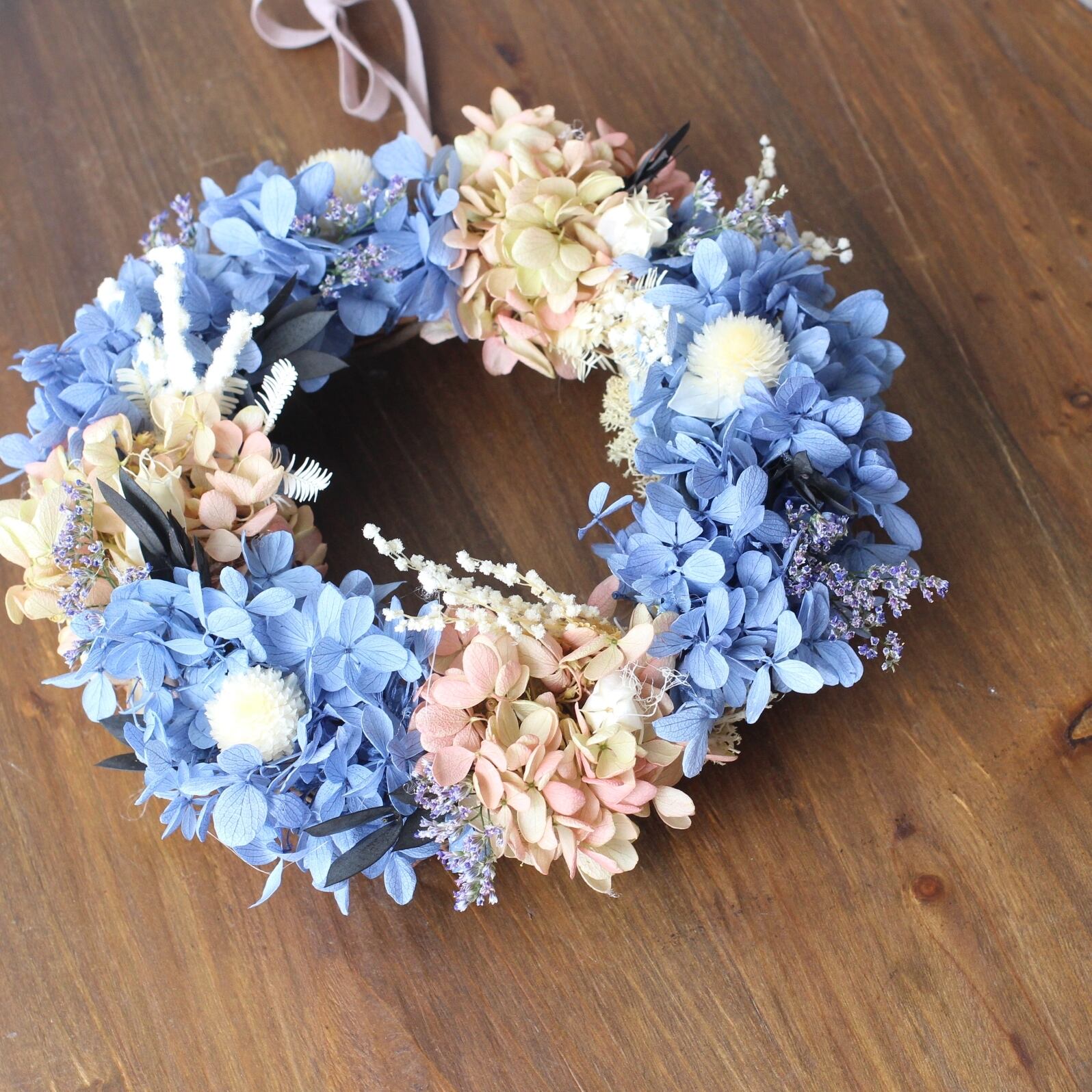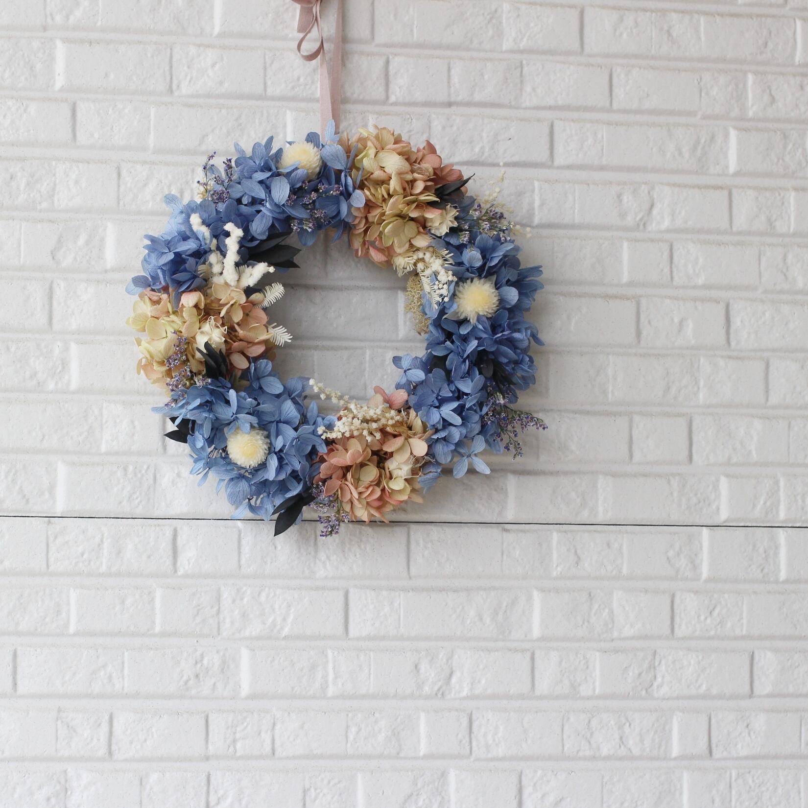 プリザーブドフラワーとドライフラワーで作成したナチュラルリースです♪