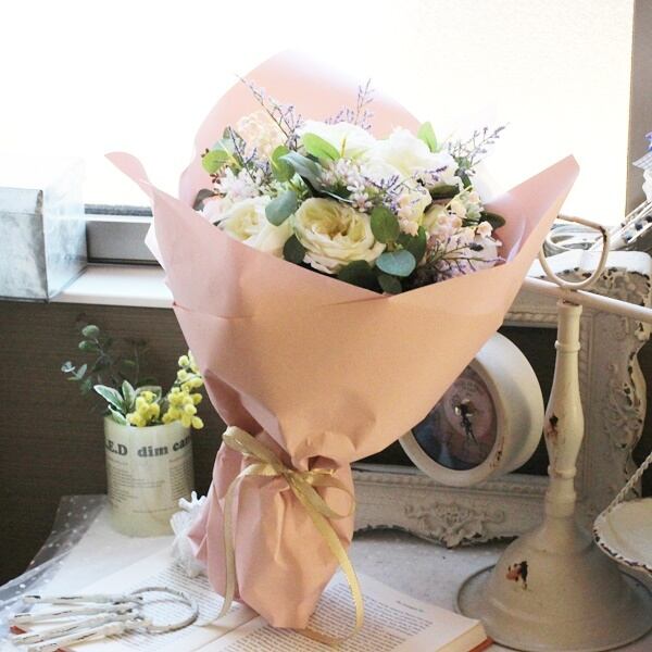 ローズのホワイトピンクブーケ