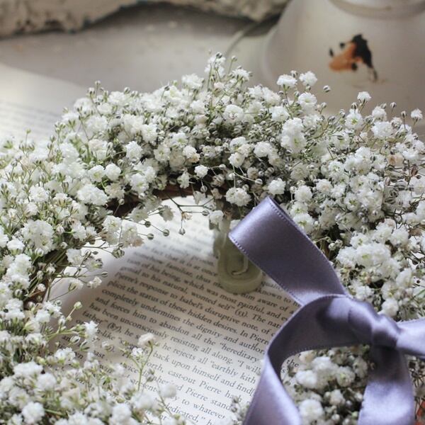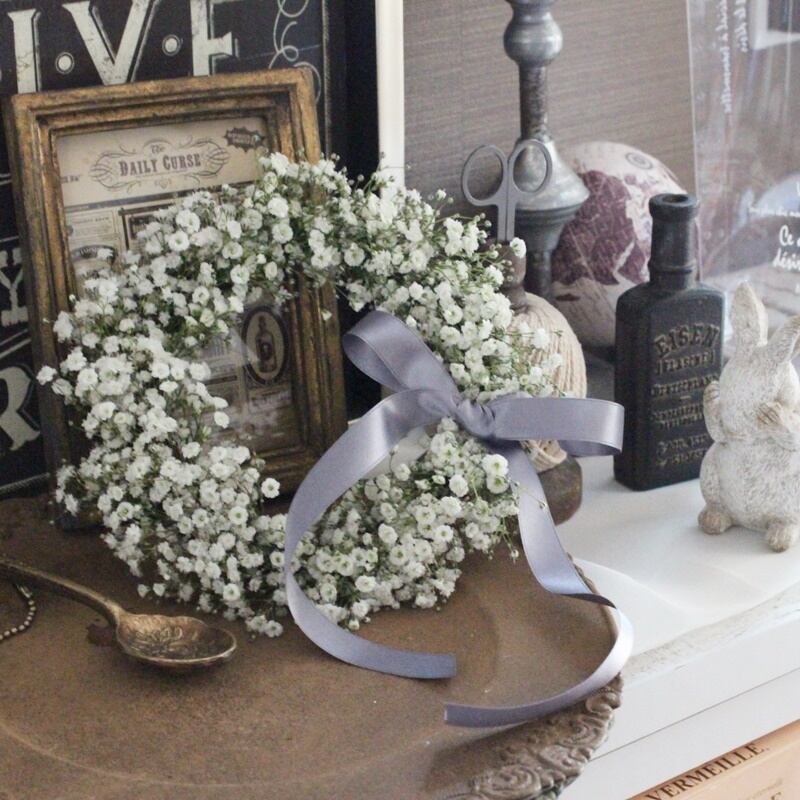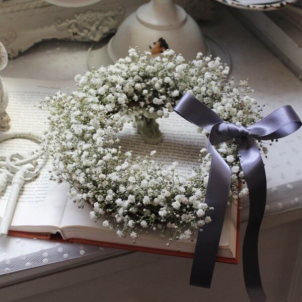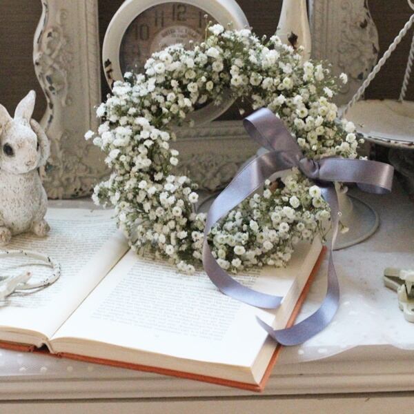 繊細なフレッシュフラワーで作ったかすみ草のリースです♪