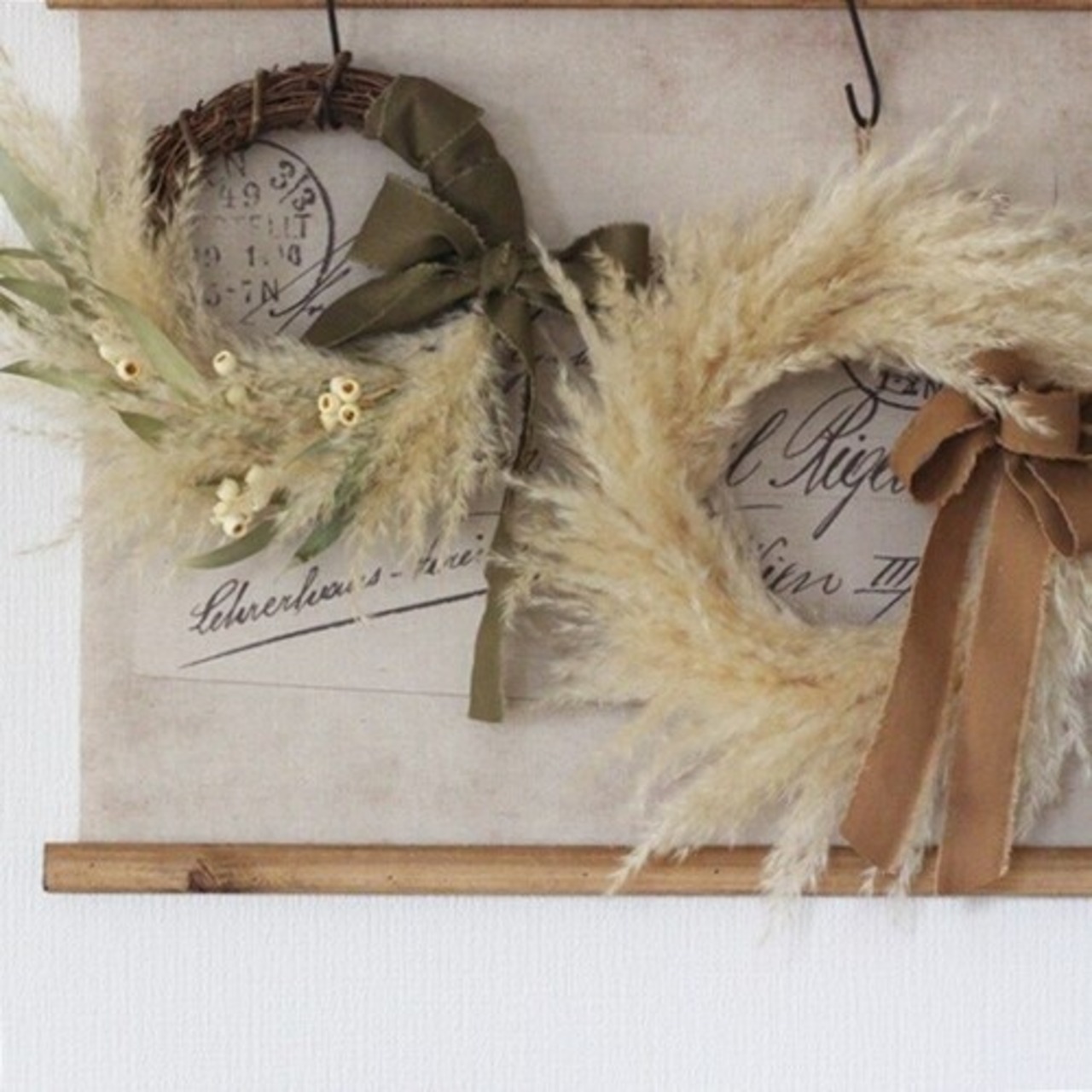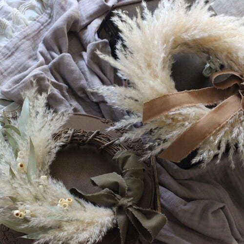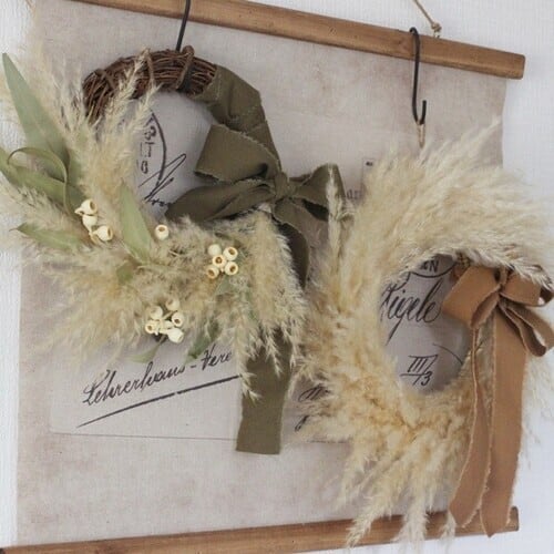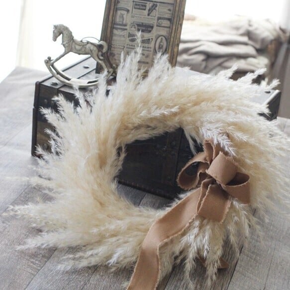 秋に可愛いパンパスグラスのドライリース。