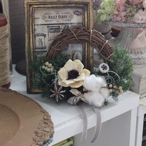 パインフラワーのアネモネとコットンをメインに、可愛いハーフリースをご用意致しました!
