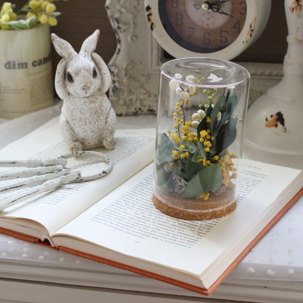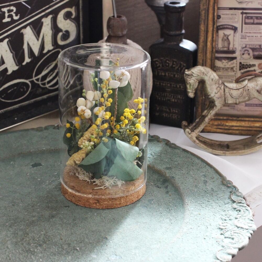 ■花材:ユーカリ・モリソニア・モス(プリザーブドフラワー) ミモザ・アキレア・ナンキンハゼ(ドライフラワー)