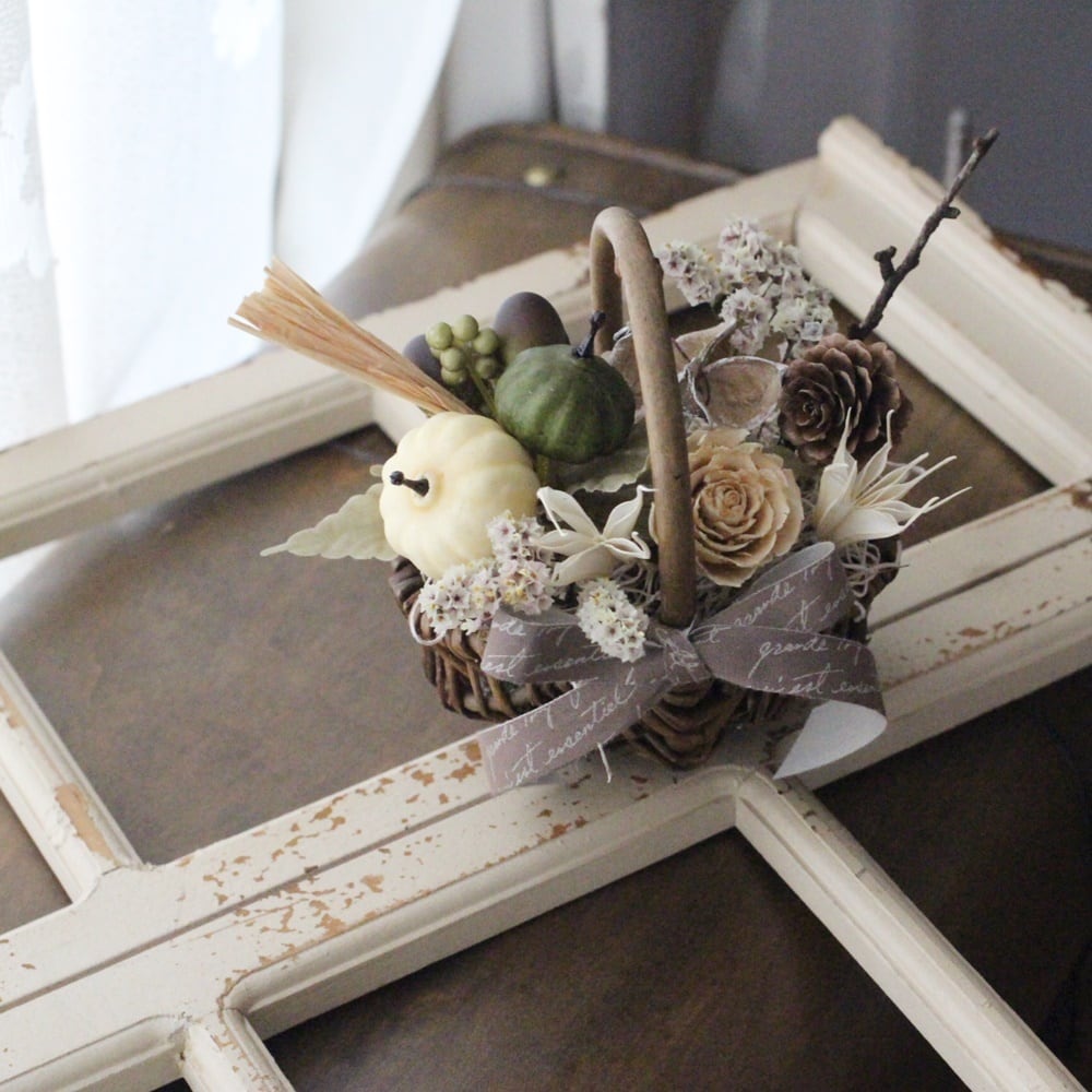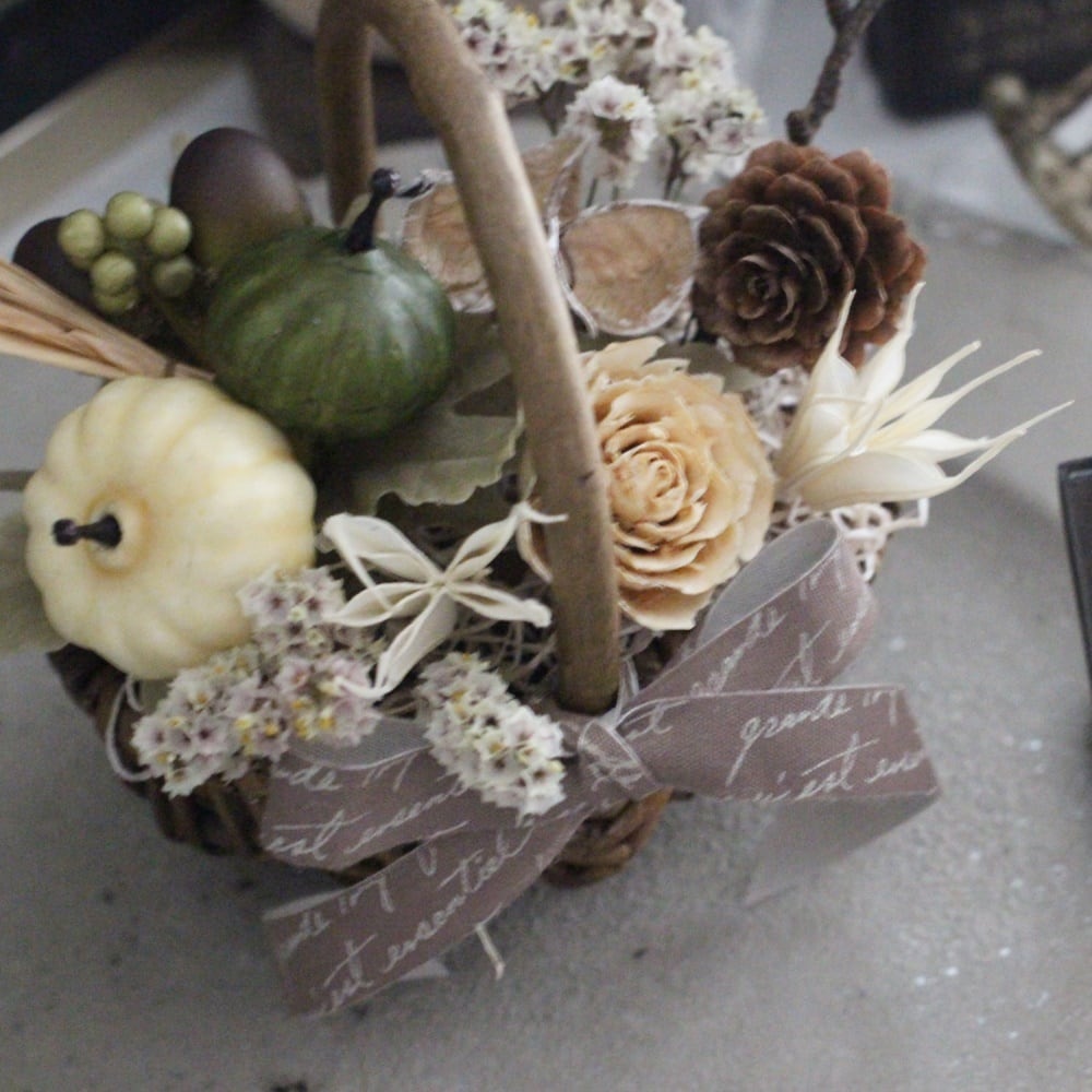 秋におすすめのバスケットですが、一年中飾っていただけるデザインとなっております。
