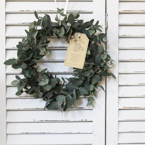 こちらのリースは、生の状態のユーカリをリースに付けドライに仕上げております。
