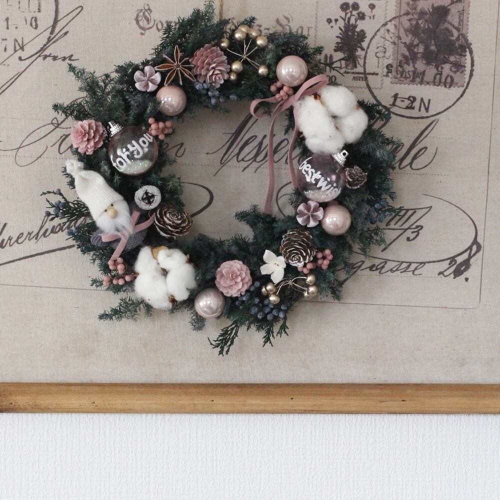 人気のクリスマスリース、今年はピンクのキュートバージョンをお作り致しました♪