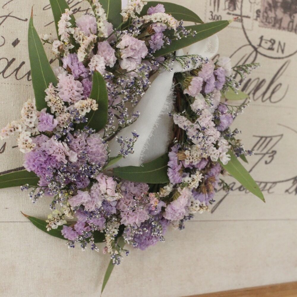 スターチスを使ったドライフラワーのリースです。