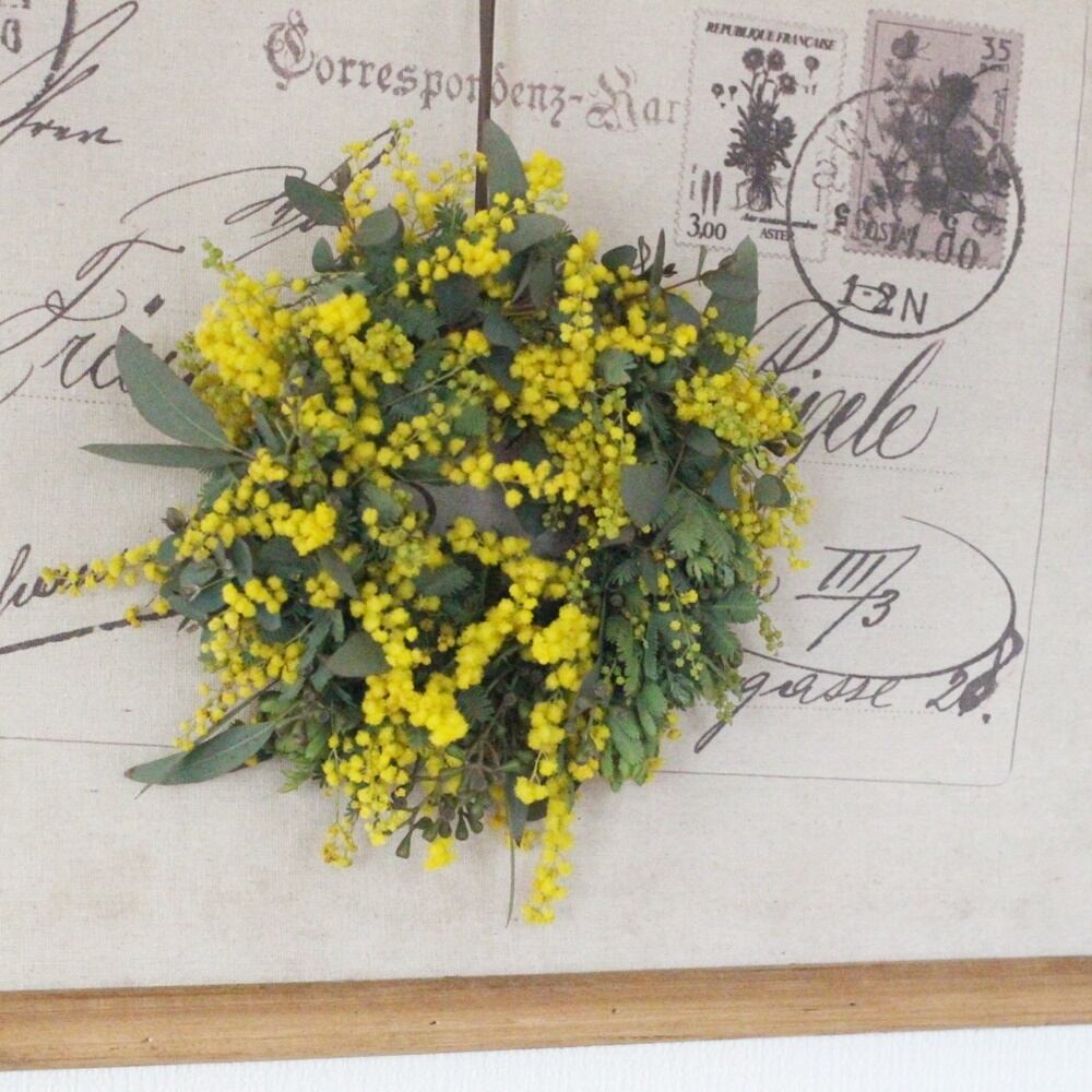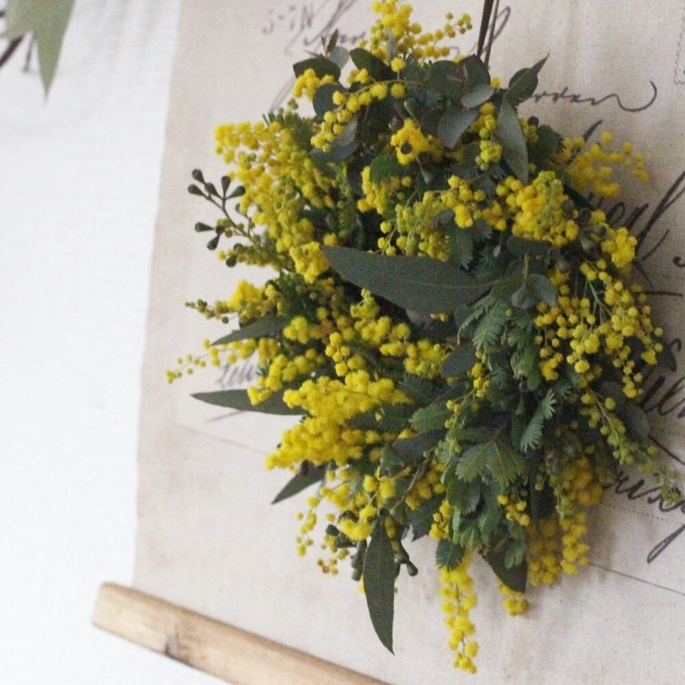 ◆花材:ミモザ・ユーカリ(ドライフラワー)
