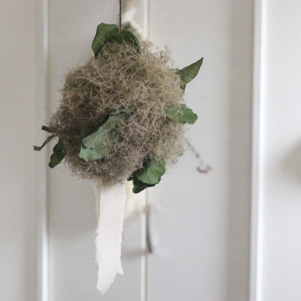 シンプルに、スモークツリーと葉のみで飾り付けました。