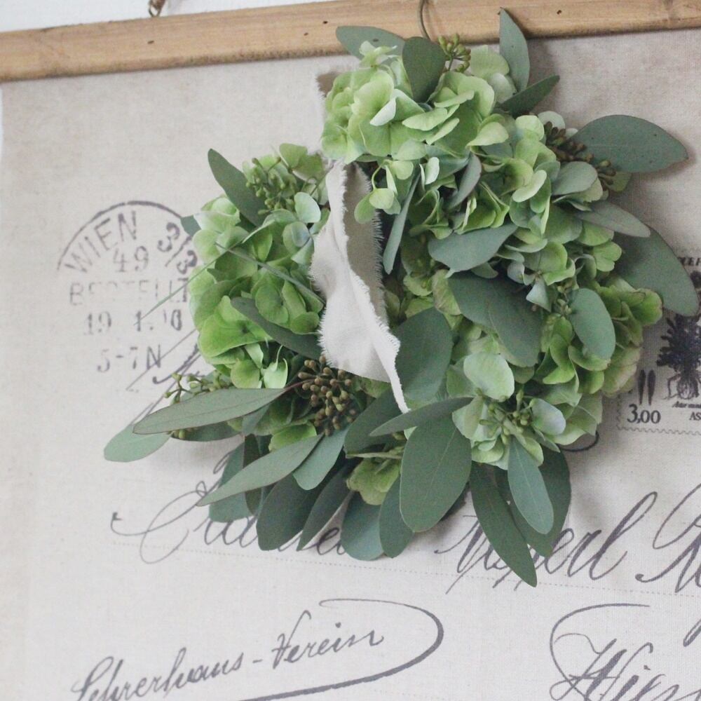 繊細なフレッシュフラワーのアジサイで制作したリースです♪
