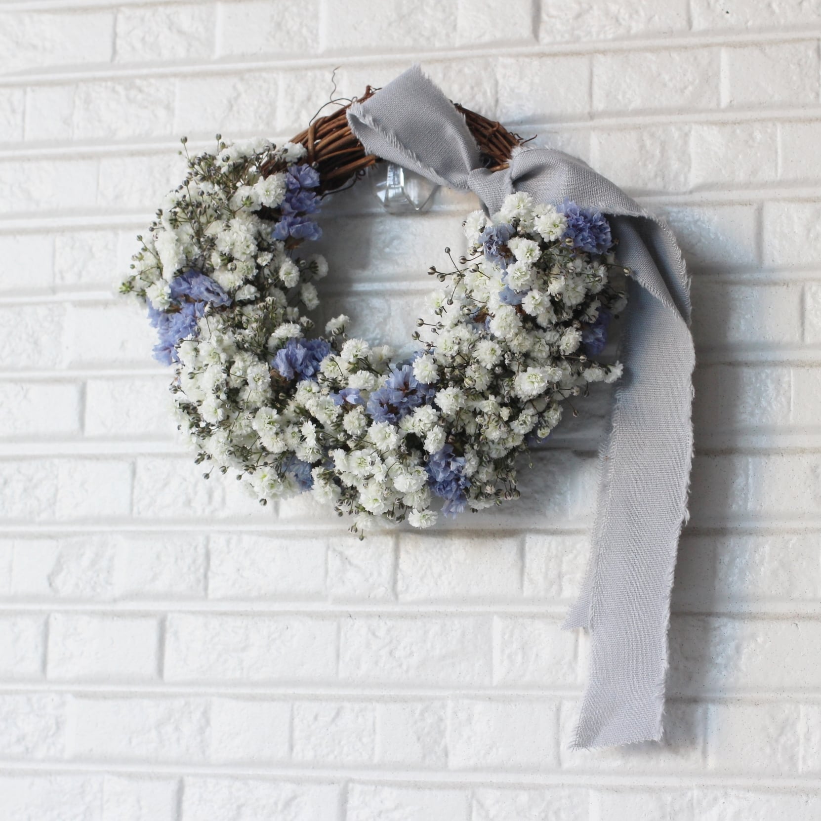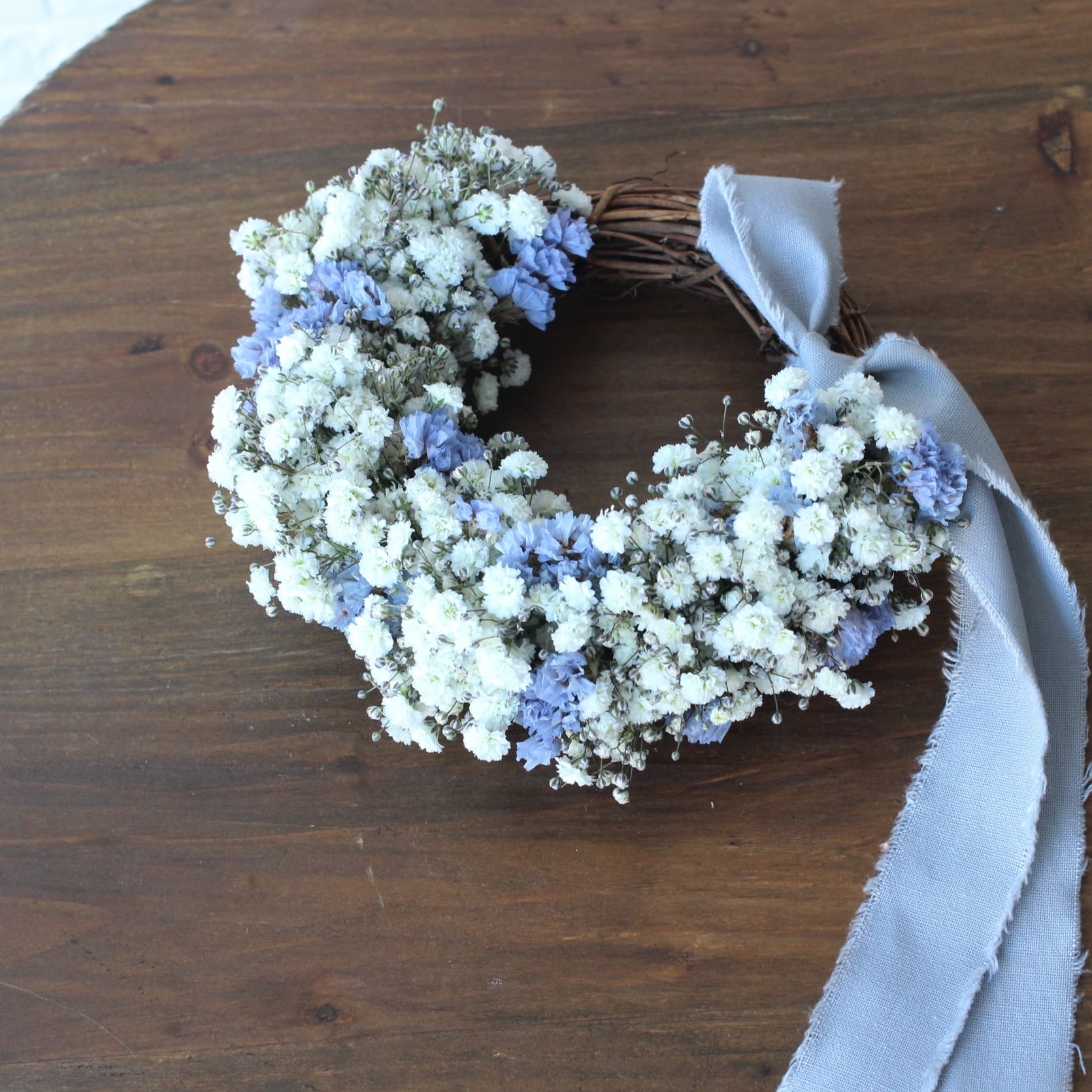 ◆花材:かすみ草(フレッシュフラワー)スターチス(ドライフラワー)