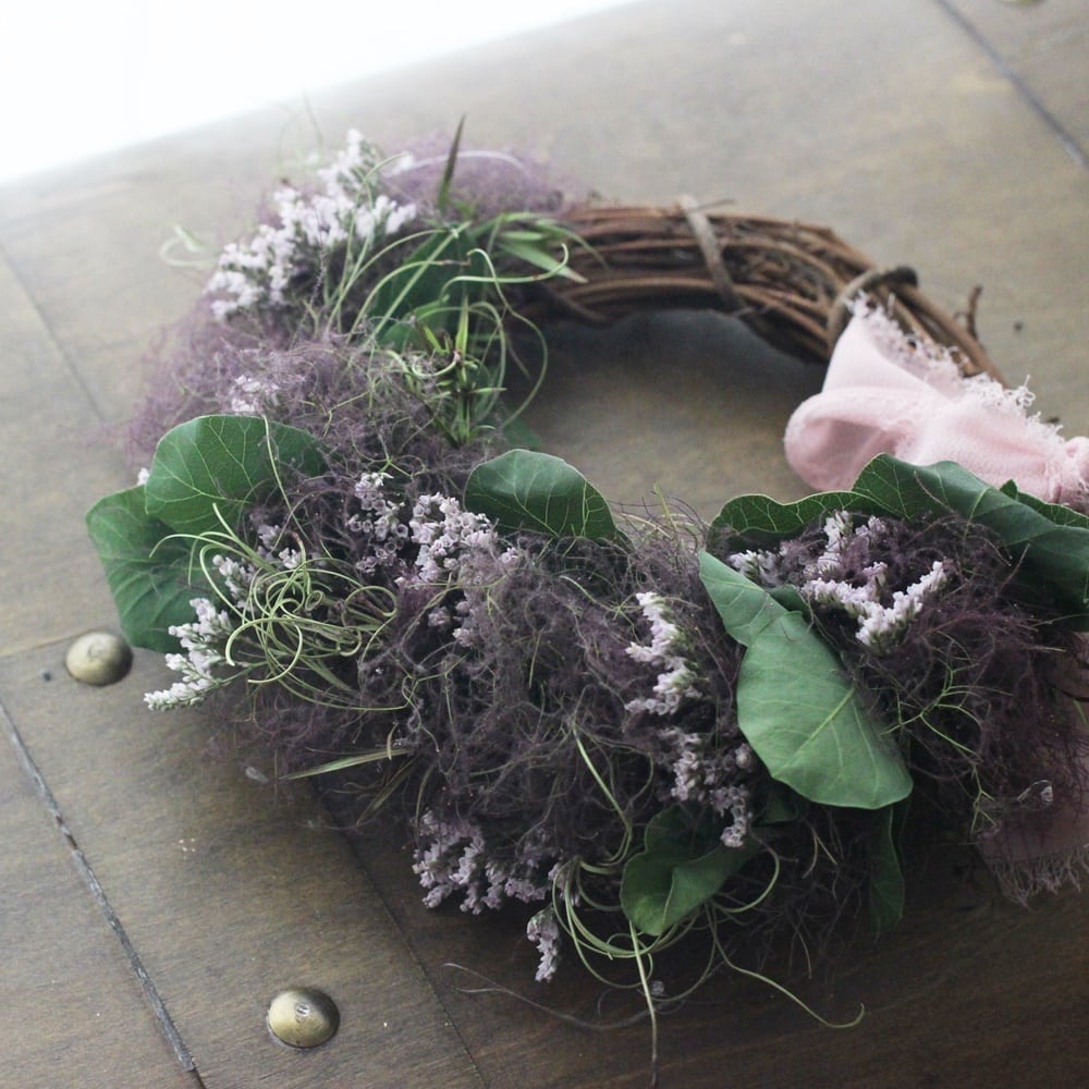写真は作りたてのためフレッシュ感のある綺麗な色味となっておりますが、ご購入の時期によってはドライフラワーでの制作となり、くすむ場合がございます。